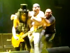 Proprio ieri parlavo dell’aura iconica attorno a Slash, e proprio ieri al concerto di Milano un ignoto ciccione, forse per accertarsi che Slash fosse una persona realmente esistente e non un ologramma, gli è piombato addosso mentre suonava l’assolo di Sweet Child o’Mine.