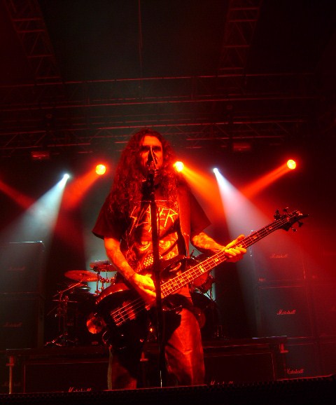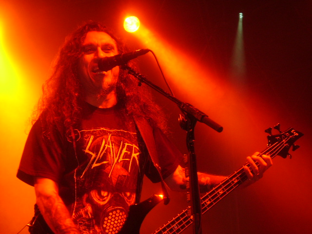 Prima del match il pronostico di tutti era per una vittoria ai punti dei ‘Deth. Il dvd del Big Four ci mostrava un Araya stanco e svociato, che, reduce da un’operazione chirurgica, sembrava prossimo al capolinea. Questa sarebbe stata la quarta volta che avrei visto gli Slayer e sapevo bene come Tom avesse già iniziato a perdere colpi. Il forfait di Jeff Hanneman, colpito da fascite necrotizzante (adesso pare aver recuperato del tutto e ha ricominciato a esercitarsi con lo strumento), era sembrato la tegola definitiva. Che succede? Che dopo dei Megadeth così uno pensa quasi di poter pure fare a meno degli Slayer e dopo aver ascoltato gli Slayer di oggi  per un po’ ci si scorda di aver visto dei Megadeth così. Non so cosa cazzo sia successo a Tom, ma questa sera ha recuperato chissà come l’allucinante furia vocale dei suoi momenti migliori. Una prestazione così titanica da parte degli Slayer è una delle esperienze più esaltanti che possano succedere nella tua vita musicale.