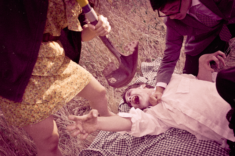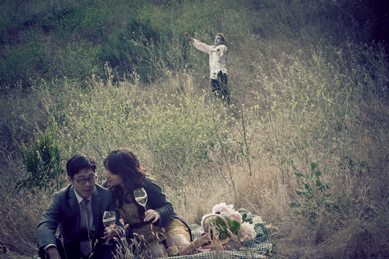 Nonostante l’ostentato ottimismo del sito di monitoraggio Zombiewarning, che continua a classificare come remota l’eventualità di un’epidemia, si moltiplicano i casi di avvistamento di morti viventi in tutto il mondo. L’ultimo in ordine di tempo è avvenuto in Inghilterra, durante una festa di fidanzamento, ed è stato accuratamente documentato dal servizio fotografico che si può vedere più in basso. Grazie alla prontezza di riflessi dei due novelli fidanzatini coreani la minaccia è stata sventata, ma questi episodi non fanno altro che rimarcare la necessità di tenere alta la guardia contro la minaccia di una epidemia di zombi. Come si può vedere dalle immagini, la coppia è riuscita ad avere salva la vita grazie alla conoscenza del problema e dei metodi di sopravvivenza appositi. Senza perdere tempo con inutili colpi a caso, lo zombi è stato immediatamente gettato a terra e decapitato. La fortuna ha voluto che i due protagonisti della vicenda avessero con sé una vanga, ottima arma contro i morti viventi come documentato anche dalla Guida per sopravvivere agli zombi (di cui parleremo un’altra volta), ma non è da escludere che quest’arma bianca fosse stata portata appositamente nell’eventualità di un attacco. Del resto ne abbiamo già parlato: gli zombi sono una realtà, gli avvistamenti continuano a ripetersi e, nonostante i media ufficiali cerchino di evitare il panico insabbiando tutto quello che riguarda i morti viventi, le moderne tecnologie permettono di documentare sempre più episodi. Questa volta era presente la fotografa Amanda Rynda, sul posto proprio per la photosession della festa di fidanzamento. Ma la prossima volta potrebbe capitare proprio a voi. E sarà meglio per tutti se sarete preparati al peggio. (barg)
