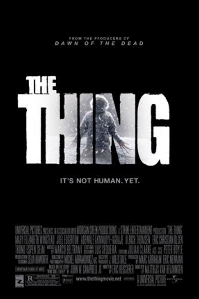 Partendo da questi presupposti tutt’altro che rassicuranti, Van Heijningen, spalleggiato dallo sceneggiatore Eric Heisserer, compie uno di quegli atti terribilmente paraculi che lo declassano immediatamente al ruolo di inetto. Sì perché la sua idea di narrare gli eventi precedenti alla Cosa carpenteriana cozza con la pedissequa scopiazzatura di situazioni e azioni riprese in toto dall’opera originale. Insomma, nella visione dell’olandese tutto ciò che è avvenuto a Kurt Russell e compagni è avvenuto, in maniera identica sia nei modi che nella scansione temporale, anche ai norvegesi di cui sopra, con qualche lievissima correzione in corsa. Certo, c’è l’ambientazione antartica che ha sempre il suo fascino (a meno che non la usi come cornice per una storia di vampirifashionvictim), c’è la tensione all’interno del gruppo, il sospetto che cresce e la paura del contagio. Però Carpenter giocava per sottrazione, portava al parossismo la sua visione ultranichilista dell’uomo e delle dinamiche interpersonali, trasformando i suoi personaggi da animali sociali ad animali desocializzati il cui unico fine è, per farla breve, salvare il proprio culo. L’olandese, invece, fa un abuso scellerato della cgi e tratteggia un gruppo di assediati dallo spessore psicologico cartavelinico, riuscendo nella memorabile impresa di rendere vano il comodo assist che l’opera di Carpenter forniva. Senza contare il finale — o per meglio dire, il prefinale — più sciocco che la storia dei prequel/remake possa ricordare e che per pietà eviterò di anticipare. Un’operazione commercialmente poco produttiva (già sonoramente bocciata al box office) e senza il benché minimo briciolo di coraggio, il cui unico appeal consiste nello sfruttare un titolo di capitale importanza. Maluccio anche lo score di Beltrami, fin troppo ossequioso nel suo omaggio alla colonna sonora di Morricone di trent’anni fa. E ora, se tre indizi fanno una prova, qualcuno impedisca a Carpenter di autorizzare ulteriori remake dei suoi film. (Matteo Ferri)