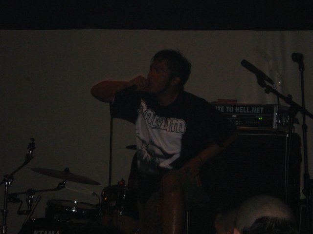 E arriva il turno dei Wormrot. La band sistema gli affari veramente in poco tempo e scalda i ferri con consapevole destrezza, infatti basta un cenno non si sa di cosa e parte subito il marasma. Arif è un dannato urlatore coinvolgente, furioso e, come abbiamo avuto modo di scoprire nell’arco del breve ma compattissimo set io e la ciurma al seguito, anche dannatamente dedicato alla causa del grind. Non basta che danzi goffamente imitando l’orso Baloo perché venga via la patina di sincera incazzatura quando sprona i fan a pogare col sorriso. Piuttosto preferiamo credere che colà, a Singapore, l’abnegazione per la causa non consenta partenze brutaltruthiane per la tangente. I ragazzi sembrano degli eterni adolescenti pulitissimi in tutto quello che fanno, apparentemente senza infamia e senza lode, ma la verità giace proprio nel contesto della serata: io vengo dall’altra faccia della terra per urlare nel microfono a te cose incomprensibili. Se non è questo essere fedeli alla linea non so proprio come spiegarvelo. E poi, come scrissi ormai un anno fa, la band segue pedissequamente le regole fondamentali del grindcore tra cui il rinnovato mantra ‘se non senti il basso, è grindcore’. A riprova di questo la band suona ancora in formazione a tre: voce, chitarra, batteria. Promossi. Peccato che il carro della Earache sia passato un po’ in ritardo.