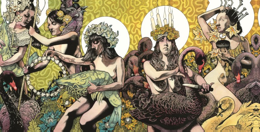 Quello che ha portato i Baroness a rivoluzionare il proprio sound dagli esordi fino a Blue Record è un piccolo miracolo tutto interno a quella che è una sincera riscossa del metal moderno. Certo, mentre parliamo di Baroness, Mastodon (addio…) e altre band che ogni due per tre finiscono sulla copertina di Decibel o consimili, decine di onesti mestieranti del metallo più conservativo ma dannatamente true (permettetemi di ripescare questa assurda parola dopo oltre dieci anni di riflusso neo-power) portano avanti la causa meritandosi appena l’accorato abbraccio delle varie scene underground locali. Eppure non riesco a negare il valore spiazzante che ha avuto l’ultimo decennio americano in fatto di metal: come questo sia emerso orgoglioso dall’underground, come si sia imposto guadagnando consensi anche fra i non fanatici, come ci abbia sbalordito la sua formula capace di prescindere e trascendere i generi. Ma per quanto tutti noi possiamo avere Leviathan o Blue Record nell’hard disk, devono comunque venire a trovarci a casa e sfidarci al karaoke priestiano per capire quanto siamo true. Faccio per dire, ovviamente. Il punto però non è tanto la ‘trueness’ del sound di una band (ci mancherebbe), quanto lo sbrodolarsi addosso intorno a quelli che sono clichè ormai noti, che nel caso della band in esame partono addirittura dai Thin Lizzy (March To The Sea), passano ovviamente per i Maiden più tarantati, terzinati ed evocativi, si tuffano nella pastella psichedelica del metal occhialuto del ventunesimo secolo americano e s’inzuppano nel pantano sudista che ormai dalla Southern Lord alla Relapse stessa un po’ tutti promuovono come moderna estetica metallara. E non ci metto in mezzo Neurot o Hydrahead perché ormai i cascami postcore sono stati tutti riassorbiti dalla psichedelia fatta di dilatati flanger anni Settanta (Cocainum). Ok, ci sarebbero infinite parentesi da aprire riguardo l’ossessione vintage a tutti i costi che, moda o non moda, rischia di essere seriamente il fondo del barile da grattare tutti insieme quando, prima o poi, le idee finiranno. Altro punto a sfavore del nuovo album anche se, ad onor del vero, il grande mestiere della band e la loro esperienza compositiva non porta mai le dette influenze nella sfera del citazionismo, del tributo doveroso ma le trasforma in grande presenza su disco.
