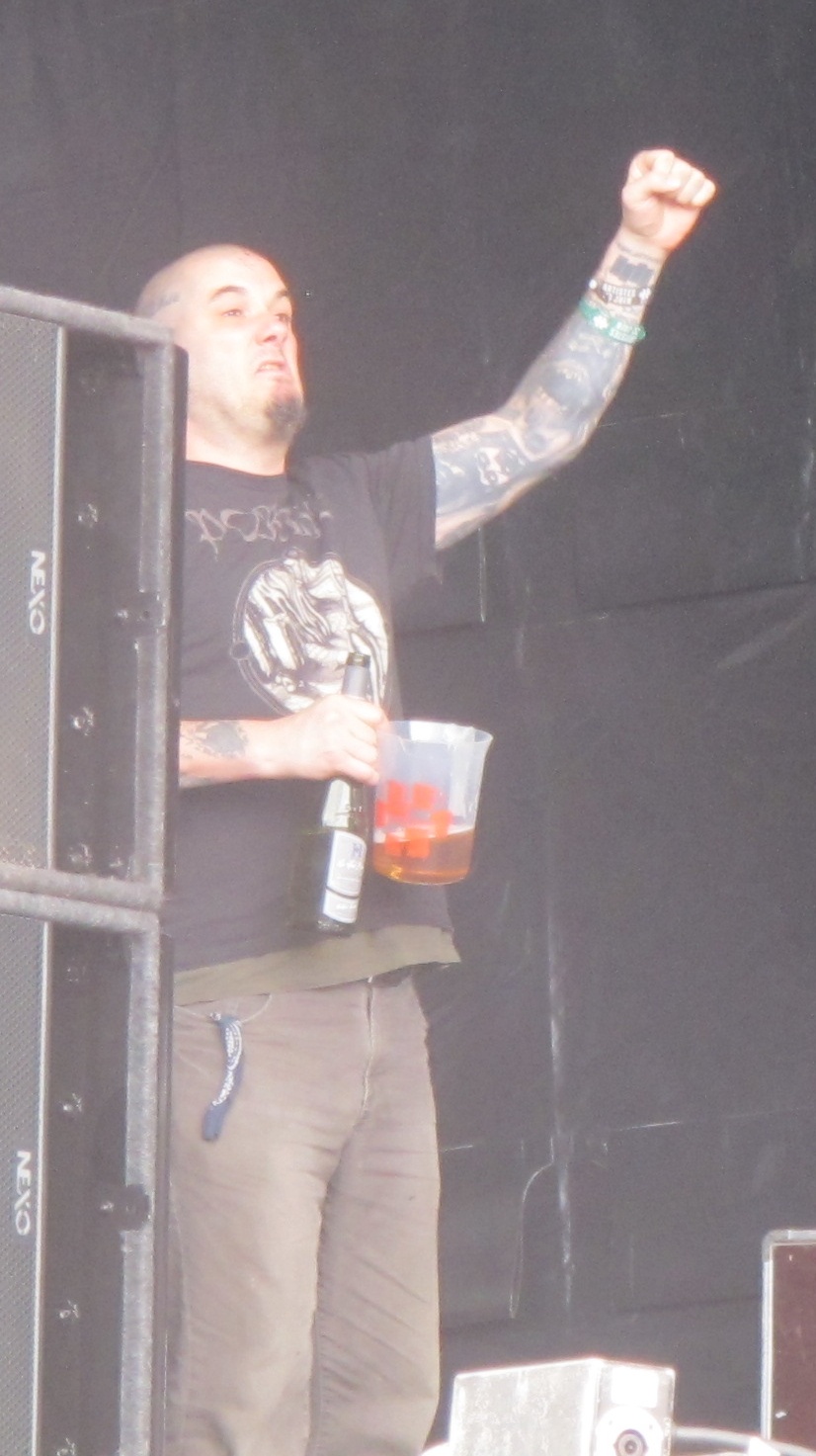 2) Phil Anselmo metallaro vero. Arriva a Clisson ed è il padrone di casa, dopo dieci minuti ha il sangue che gli cola dal capoccione rasato perché continua a sbatterci il microfono come uno scimmione cretino. Era il mio modello di virilità da ragazzino e lo è ancora oggi. Costantemente dietro al palco a seguire ogni concerto con in una mano una caraffa di birra e nell’altra una bottiglia di Muscadet. Dividerà il palco con Accept, Voivod, Danzig e vari altri. Se lo incontravi al cesso cantava pure con te. L’Hellfest 2013 è il suo personale Metal Karaoke. Idolo totale.
