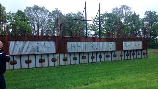Nella notte tra sabato 2 e domenica 3 maggio, alcuni individui si sono introdotti nel sito dell’Hellfest. Ancora una volta, il festival è vittima di attacchi di gruppuscoli cattolici, ma ora dalle parole sono passati ai fatti! […] Stamattina abbiamo trovato molti danni: vandalismo e graffiti su sculture e contenitori, distruzione di varie strutture e aree verdi (tra le scritte, ‘J-47: primo avvertimento’, ‘Vade retro Satan’ etc).