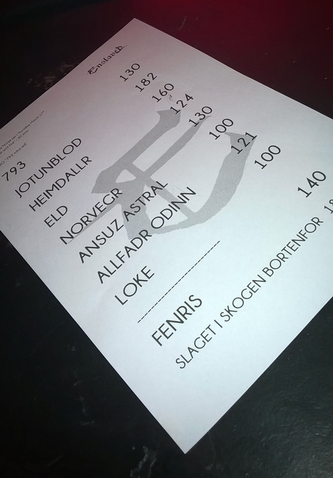 A prima vista, leggendo la presentazione del concerto di stasera, sembrerebbe strano che proprio gli Enslaved – forse l’unico tra i gruppi fondanti della scena norvegese che non solo è uscito vivo dagli anni ’90 ma ha trovato una vera seconda giovinezza creativa nel terzo millennio – siano saltati sul carrozzone passatista dei live incentrati solo su pezzi o album “storici”. Sono operazioni che mi lasciano sempre un po’ perplesso. Al di là del piacere epidermico da fan della prima ora, ci vedo sempre un’ammissione implicita di fallimento – come dire, “Ok, siamo ancora in giro nonostante tutto ma diciamocelo, non ci regge più la pompa come tot anni fa”. In realtà la questione qua è un po’ più complicata, dato che “… of Frost and Fire” è solo l’atto di apertura di una tre giorni organizzata dall’associazione By Norse per celebrare al contempo i 25 anni di attività degli Enslaved e i 200 anni della Costituzione norvegese – partecipano a vario titolo Einar Selvik coi Wardruna, Gaahl, Costin Chioreanu e Ivar Bjornson solista col progetto Bardspec, ma ovviamente il pezzo forte sono proprio gli Enslaved, che per l’occasione suonano per tre sere consecutive in locali diversi e con scalette spezzate cronologicamente a coprire l’intero arco della loro carriera.
