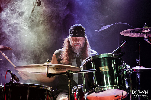 Per ROSS THE BOSS il cambio palco è stato breve, molto breve. Il tempo di prendere una birra e già sento l’inconfondibile tocco di Rhino sul charleston. Urlo: “RHINO!”, e lo urlerò per tutta la sera. Ho sempre pensato che il mastodontico batterista abbia rappresentato una specie di “porta scorrevole” nella carriera dei Manowar: se lo avessero tenuto dopo Triumph of Steel ci avrebbero guadagnato sotto tutti gli aspetti; rimane la simpatia umana per il compianto Scott Columbus, ma Rhino è di gran lunga il miglior batterista che i Manowar abbiano mai avuto, e probabilmente sarebbe stato perfetto per la seconda parte della loro carriera. Vederlo al fianco di Ross The Boss è una consolazione purtroppo mitigata dal fatto che non sono stati estratti pezzi da Triumph of Steel ma solo dai dischi con Ross presente in formazione, e cioè fino a Kings of Metal. L’apertura è proprio affidata a Blood of the Kings, rigorosamente in versione originale; e, per sincerità intellettuale, devo confessare che l’inizio dell’esibizione non è stato dei migliori. Forse perché eravamo reduci dal preciso fuoco di sbarramento degli Ancillotti, ma ci è sembrato che Ross e compagnia sembrassero quasi voler semplicemente timbrare il cartellino; anche perché ok Ross, ok Rhino, ok il bassista dei Symphony X Mike LePond, ma il cantante chi cazzo è? Lo chiedo anche a voce alta, e la gente ride. Perché, o amici dell’acciaio, convenite con me che rifare i pezzi dei Manowar è una cosa seria, ma cercare di riprodurre il timbro di Eric Adams è ai limiti della blasfemia.