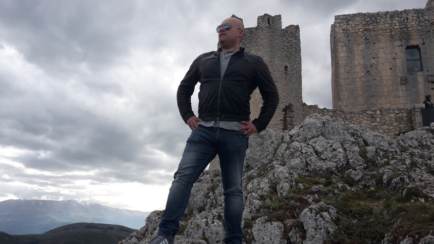 che comincia con una telefonata a Cesare Carrozzi, l’occhio azzurro più malandrino della porcilaia. Lo chiamo e gli dico brutto pelato, non ci vediamo dai Blind Guardian, Ciccio ti ha visto due volte in vita sua e vabbè che a causa del tuo gender ondivago non vieni mai al Tube Cult, però che tu sia maledetto, siamo a un’ora di macchina e sarebbe opportuno che andassimo a mangiare insieme qualche animale morto schiantato. Lui ci pensa e mi dice che sì, si può fare. Ci troviamo a metà strada, nella piazza di Capestrano, borgo di montagna epico e maligno nonché luogo di ritrovamento del Guerriero di Capestrano. Carrozzi arriva rombando, mostrando il dito medio e insultandoci. Poi ci carica in macchina e dopo il pranzo in un agriturismo della madonna in mezzo alle capre facciamo una gita da veri manowar a Rocca Calascio, dove hanno girato Ladyhawke, uno dei posti più power metal che abbia mai visto in vita mia, almeno quanto il film.