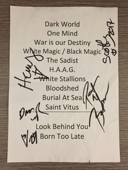 Sui Saint Vitus fatico davvero a scrivere qualcosa di sensato senza sparare superlativi assoluti a casaccio o, al contrario, tediarvi con constatazioni banali per chi c’era stasera come: “Uno dei migliori concerti che mi sia capitato di vedere a Roma negli ultimi anni”. Iniziano con due brani dall’allora iniquamente sottovalutato Die Healing, un album meraviglioso che uscì in un periodo non proprio accogliente per quei suoni. War Is Our Destiny la suonano tiratissima, travolgente. È qua che si sente il tocco differente, più moderno e aggressivo, di Bruders. Il pezzo nuovo, Bloodshed, che anticipano stasera si apre con una sua sferragliata. Potete sentirlo a questo link. Già, la notizia – lo stanno annunciando loro nelle ultime date – è che con questa formazione incideranno un disco a breve.