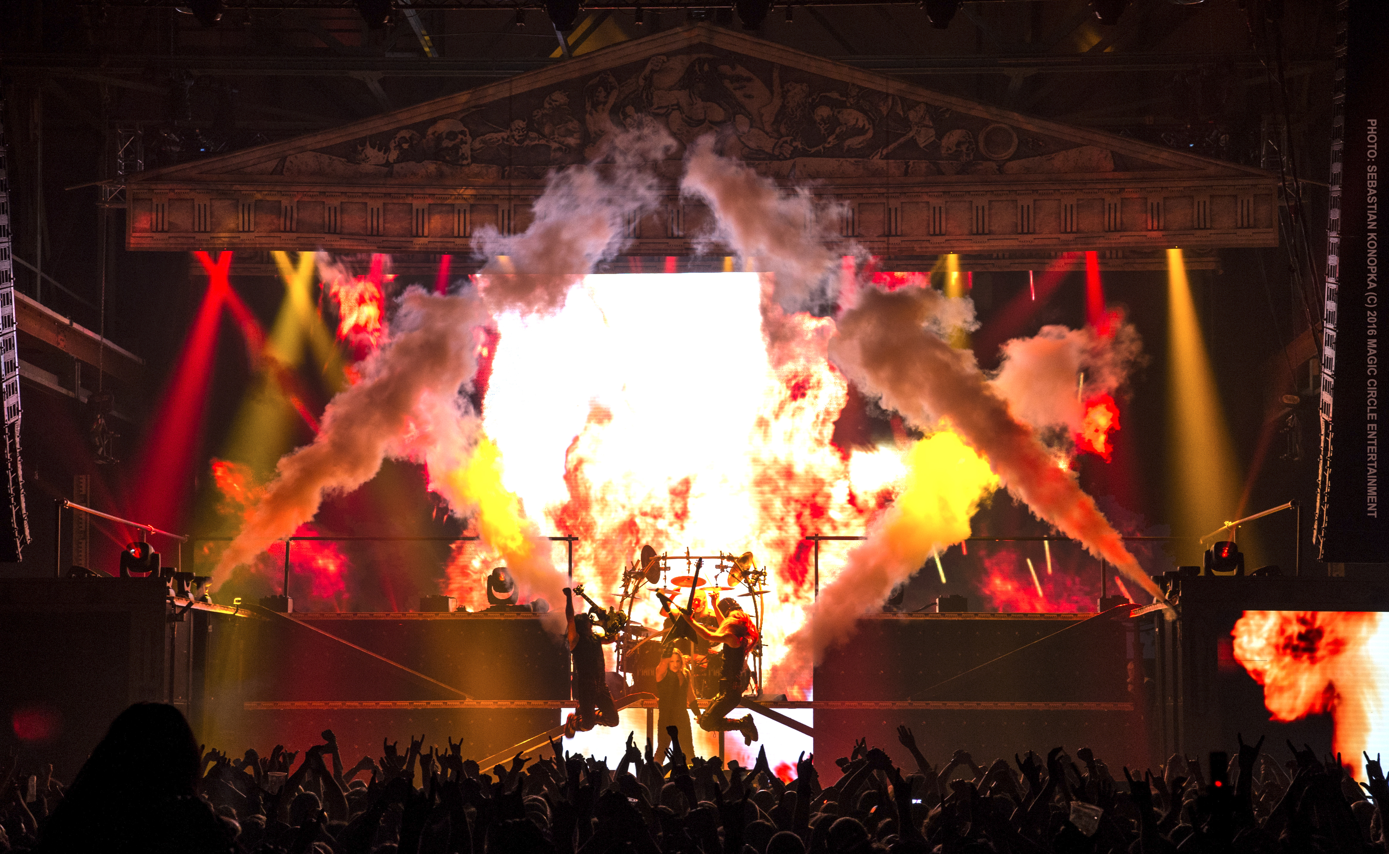 Il suono è nitido, potente e secco, a differenza del concerto di Monaco di due settimane fa in cui hanno suonato in un brutto capannone che rimandava un pastone poco distinguibile dagli amplificatori; e loro sembrano presi benissimo: persino il discorso di Joey è più allegro del solito, ed Eric Adams è talmente in forma da un punto di vista vocale da essere pure più coinvolto nel rapporto col pubblico. La scaletta è quella del tour, senza nessun cambiamento, quindi con le due Metal Warriors, Spirit Horse of the Cherokee, Secrets of Steel e il grande ritorno di Battle Hymn. L’unico appunto che farei è che, se si vuole prendere un pezzo da Gods of War, io andrei più su King of Kings piuttosto che Sons of Odin; ma sono dettagli che all’arena di Francoforte, che registra il tutto esaurito per il secondo giorno di fila, non interessano per nulla, data la magnificenza dello spettacolo che ci ritroviamo a testimoniare. Joey ci invita a spargere per il mondo la voce di quanto i Manowar stiano spaccando, e io seguo le sue direttive: mondo, non avete idea di quanto abbiano spaccato.