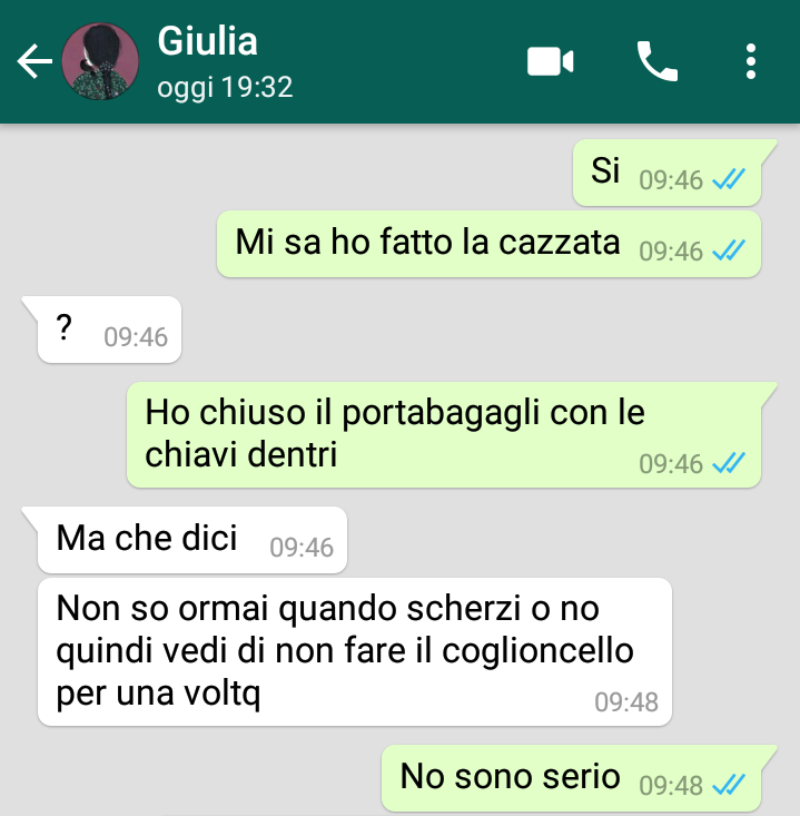 Alla fine riesco a risolvere, si tratta solo di aspettare un paio d’ore per farmi portare le chiavi di riserva a Stazione Termini.