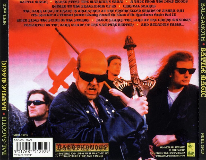 Per gli amanti del sapere nozionistico posso aggiungere che Battle Magic è il terzo capitolo della prima trilogia dei Bal-Sagoth, quella uscita per la mitologica Cacophonous Records. Seguirà una seconda trilogia, dalle ambientazioni meno fantasy e più science fiction, questa volta per la Nuclear Blast, nella quale si noteranno evidenti cambiamenti nel suono e nella produzione (cambiò, chissà perché, anche il copertinista). Posto che è impossibile dare un qualche giudizio di valore su uno qualsiasi dei loro dischi, io trovo che la migliore trilogia sia la prima e che Battle Magic, nello specifico, sia il vero apice compositivo dei fratelli Maudling e di Byron Roberts, che tra l’altro è anche uno scrittore di racconti fantasy, alcuni dei quali hanno ispirato le sue canzoni, come nel caso di Battle Magic stesso.