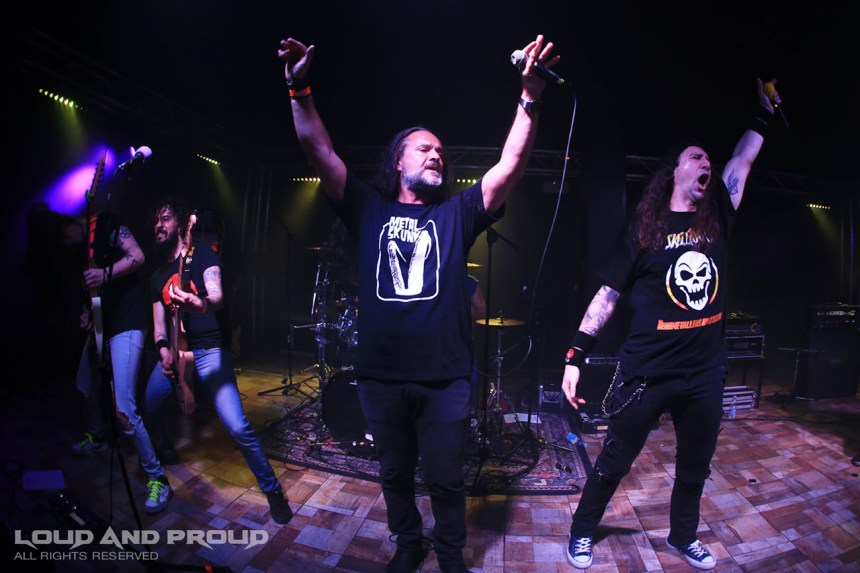 Salgono finalmente i Domine e ovviamente lo stato d’animo cambia. Come detto sopra, è la quattordicesima volta che li vedo, e non ricordo per quanti di questi concerti abbia anche scritto un report, quindi non c’è nulla di particolarmente brillante che mi venga da dire se non che per loro il tempo sembra non scorrere mai. La cosa migliore è che sono loro i primi a divertirsi, e si vede. Sembrano un tranquillo gruppetto di amici toscani che suonano al pub sotto casa nel dopolavoro, con la piccola particolarità però di essere il miglior gruppo epic metal mai uscito dai confini nazionali. Morby ripete per l’ennesima volta una di quelle prestazioni vocali mostruose per le quali è da sempre famoso, mentre il gruppo è compatto, rodato e fila dritto come un treno, ripescando addirittura Horn of Fate che non suonavano dal vivo da una dozzina d’anni. La scaletta è piena di classiconi: Dragonlord, The Fall of the Spiral Tower, The Hurricane Master, True Believer e via dicendo. Lascio dunque la parola ad Enrico Paoli e Riccardo Iacono che rispondono nel video qui sotto; per tutto il resto spero che la prossima volta che passeranno dalle vostre parti voi ci pensiate bene prima di perderveli. (barg)