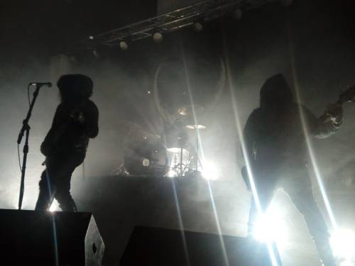 Quando finiscono gli Enisum ci rendiamo conto che siamo quasi un’ora in ritardo sulla tabella prestabilita, e una parte dei già pochi astanti preferisce tornare a casa per dormire qualche minuto in più. Comprendo perfettamente il ragionamento, ma è un gravissimo errore, perché gli UADA tirano fuori un concerto meraviglioso nonostante il pochissimo tempo a disposizione. Incappucciati e perennemente occultati da nuvoloni di fumo artificiale, i quattro di Portland sparano uno dopo l’altro i pezzi di quei due dischi incredibili di Devoid of Light e Cult of a Dying Sun, mettendoci tutti in uno stato di trance da cui usciamo troppo bruscamente e troppo inaspettatamente solo mezz’ora dopo: non so se questa sia la durata normale di un loro concerto oppure ci siano stati dei problemi che hanno costretto a tagliare la scaletta (la butto lì: il ritardo di un’ora sul programma?), ma l’unico pensiero che ho quando finiscono è che devo andarli a vedere di nuovo, il prima possibile. Non so come poter scendere nel dettaglio della prestazione perché davvero non c’è nulla da dire se non che questo è esattamente il tipo di sensazioni che un concerto di questo tipo di black metal deve dare. (barg)