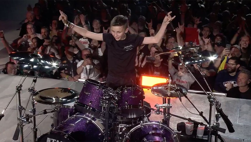 Il ragazzino uguale a Andrea Conti del Milan che, nel giorno del suo compleanno, ha avuto l’onore di togliere di mezzo Lars Ulrich da quello sgabello firmato Tama.