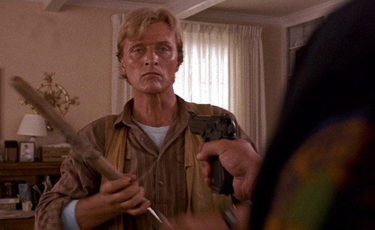 Per tutti gli anni ’80 una serie di colpi a segno in qualsiasi direzione: il decennio inaugurato dall’inderogabile Spetters, il film più estremo di Verhoeven, biglietto d’ingresso a Hollywood per entrambi, un capolavoro semplicemente impensabile oggi nell’era del Metoo. Poi antagonista di Stallone ne I Falchi della notte, la consacrazione con Blade Runner, frequentazioni autoriali (Nicolas Roeg, Sam Peckinpah per l’ultimo Osterman Weekend, letteralmente mutilato in postproduzione), l’entrata di sfondamento nell’immaginario di milioni di bambini con Ladyhawke che è il secondo incancellabile gancio per cui verrà ricordato, l’ultima con Verhoeven in L’Amore e il Sangue (come sopra, un capolavoro impensabile oggi), terrificante John Ryder in The Hitcher – La lunga strada della paura, presagio per capire dove sarebbe andato a finire, due passaggi italiani, Olmi per La Leggenda del santo bevitore, Lina Wertmüller per il lisergico In una notte di chiaro di luna, e che fatica arrivare alla fine in entrambi i casi. Le tappe successive, una questione personale: la mia introduzione al cinema, i film che hanno significato più per me nella mia vita. Giochi di morte, il migliore postatomico di sempre (andrei a dirlo in faccia a George Miller); Sotto massima sorveglianza, se Don Siegel vivesse nell’era cyberpunk; l’ombra di John Ryder si allunga ne Le mani della notte, giallaccio Tarantino pilotato con protagonista psicotico, altro grande classico da videonoleggio; Detective Stone, pietra angolare del cinema cyberpunk; Buffy – L’ammazzavampiri, flop epico all’uscita, gli anni ’90 in un colpo solo (ne verrà ricavato un telefilm da putrefazione dei neuroni poi); di nuovo psycho in Arctic Blue, ambientazione con velleità La Cosa ma reale, senza i mostri; infine Sopravvivere al gioco, adattamento fuori tempo massimo del racconto di Richard Connell La partita più pericolosa (Senza tregua di John Woo, basato sullo stesso racconto, era uscito l’anno precedente), con un cast all-star del videonolo – Ice-T protagonista, Gary Busey direttamente da Trappola in alto mare.