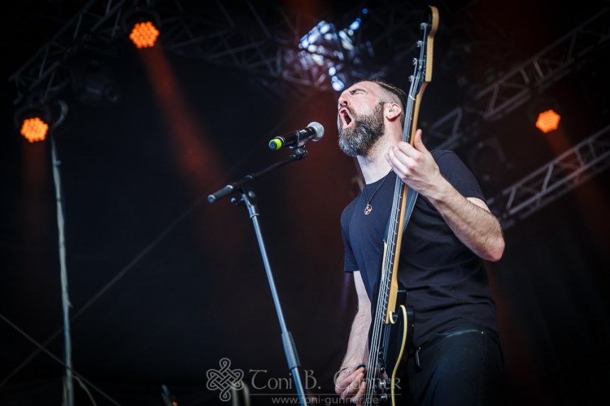 Mentre cazzeggiamo gioiosamente per l’enorme area del festival la mia dolce metà si gira di nuovo verso di me scandalizzata. Ha ragione: da qualche parte c’è uno che rappa. Aguzzo le orecchie e lo riconosco: è B-Real, dei Cypress Hill, al microfono dei PROPHETS OF RAGE. E non è solo: insieme a lui c’è Chuck D dei Public Enemy, accompagnando i tre quarti di ciò che furono i Rage Against the Machine nella riproposizione del repertorio. Io sono stato un grande fan dei RATM, ma il rap al Wacken stona, e non voglio averci nulla a che fare. Piuttosto che rimanere nei dintorni facciamo quindi vari giri tra le centinaia di bancarelle e finisco anche per tirare con la balestra, finché non arriva il momento dei PRIMORDIAL, con cui ho sempre avuto un rapporto ambivalente. Non solo io, in realtà: parlando con gli altri tizi di Metal Skunk è uscito fuori che è un sentimento comune: a più o meno tutti piacciono, in linea di principio, ma a nessuno poi viene mai voglia di metterli nello stereo. Bene, con questo concerto penso di aver definitivamente capito i Primordial: una prestazione intensissima, epica, battagliera, da rimanere senza fiato, con un cantante che da solo regge il palco e un repertorio che, sentito dal vivo, soprattutto in questo contesto, acquista finalmente senso. Un’illuminazione, più di ogni altra cosa. E anche a me, come a Ciccio, è venuta voglia di riascoltare l’intera discografia.