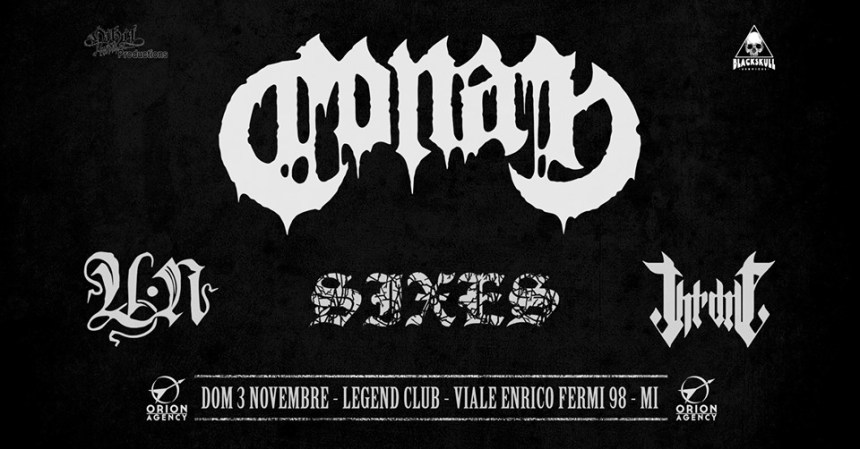 Non sono barbari, e men che meno superdetective con gli occhiali. Però un po’ distruttori lo sono: i Conan si portano dietro una solida fama di schiacciasassi dal vivo, che io purtroppo non ho mai potuto esperire in prima persona – ed è proprio per questo che ci tengo particolarmente a presenziare quando verranno al Legend, portandosi di supporto i compagni di doom UN, Sixes e Throne.