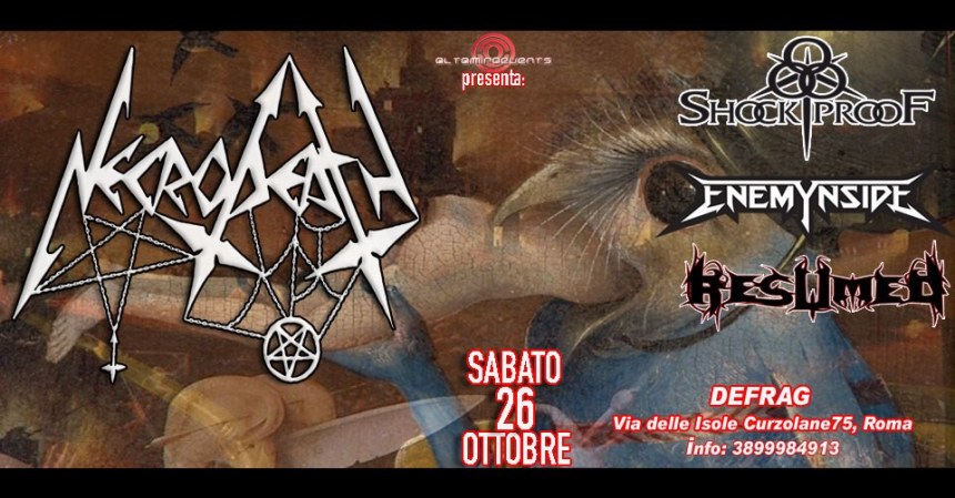 26 ottobre 2019: Necrodeath/ Shockproof/ Enemynside/ Resumed @Defrag