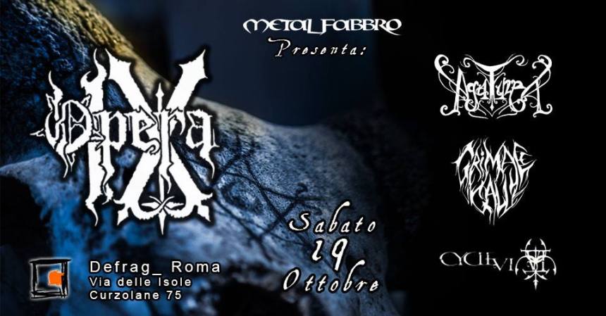 … Al Defrag, locale di Montesacro che negli ultimi anni ha riempito un po’ il vuoto lasciato dalla chiusura di molte storiche sale underground, gli Opera IX, leggenda del black metal italiano, celebrano i trent’anni di carriera e l’uscita del nuovo lavoro The Gospel, pubblicato ormai un anno fa. Ad accompagnarli tre band romane: Agatunet, Grimace Gall, Cycle VI. L’ingresso è appena sette sacchi, quindi se passate da quelle parti non avete scuse. Avendo vissuto da quelle parti fino a pochi mesi fa, aggiungo che al Defrag hanno una notevole selezione di birre.