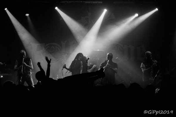 Siamo a metà concerto per riprendersi e riattaccano con Scintilla, che concede un momento di respiro, Anomalus per un ritorno alle origini di musici medioevali, e Respiro Avido. Piccolo inciso: non ricordo di preciso se è stato durante  questa o durante Un’Altra Volta Ancora che ho intravisto un tipo in divisa da thrasher che si lancia con il bicchiere di birra mezzo pieno nel pogo e riesce a bere senza versare neanche una goccia del prezioso liquido. Hail per la tecnica, ragazzi. Quando giunge il momento di Le Voci della Sera Lore cede il passo al pubblico: “Questa la cantate voi”, ed effettivamente così è; lui si aggiunge praticamente solo per l’ultima strofa, e l’unisono non viene neanche male. A questo punto potrebbe chiedere qualunque cosa, e la sua richiesta è di portarlo al bar. Vuoi non accontentarlo? Si lancia sul pubblico sulle note di Rocce Nere, per finire in piedi vittorioso sulla barra del bancone, indicando i compagni sul palco che suonano. Dopo averlo riportato sul palco parte Con Passo Pesante. L’encore non ve lo racconto neanche, ormai avete capito l’antifona. È stato un viaggio bellissimo, esclama Lorenzo emozionatissimo. Lo è stato anche per noi. (Maurizio Diaz)