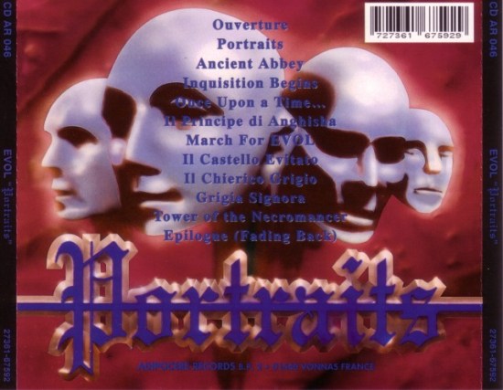 Portraits rappresentò l’esplosione del black metal nelle intenzioni del gruppo, che, per l’occasione, rinnovò la line-up ed entrò in studio con un sacco di composizioni inedite. Ancient Abbey e Il principe di Anghisha furono la dimostrazione fisica dell’enorme potenziale di cui i padovani disponevano: avevano i riff giusti, il dinamismo, la ferocia. Avevano un gusto melodico enorme, quello che ai comuni manca e mancherà sempre. C’erano anche un sacco di difetti, però, tra cui lo screaming monodimensionale di Giordano Bruno, e la controparte offerta dalle linee vocali femminili, spesso fuori tono e di un’espressività latente. Gli Evol avevano dunque cominciato a sistemare le cose: già variando la sezione ritmica, e relegando le parti più atmosferiche – o se preferite folk – a una minore porzione di registrato, il passo in avanti era palpabile.