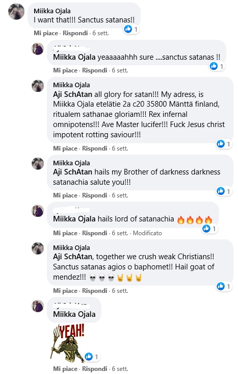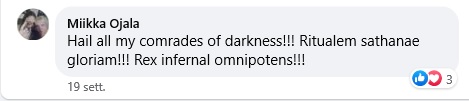 Eppure Miikka vive in città, presumo a Mantta, la base operativa da cui ha gestito – sino a 2018 inoltrato – il profilo social Asmodus Miikka Ojala, tenendo la testa alta e l’asta ben dura nel dichiarare quasi giornalmente cose del genere: