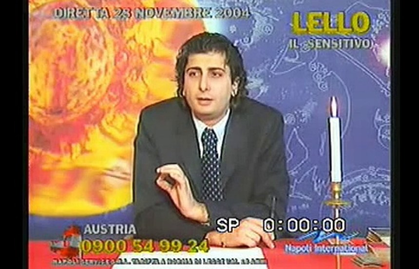 Uno dei miei maghi televisivi preferiti di tutti i tempi è il mitologico Sensitivo Lello. Quando da ragazzo mi imbattevo nelle sue trasmissioni mi fermavo spesso. Vi spiego perché è nella mia top 10 personale. Lello era sempre calmissimo e soprattutto perennemente rilassato. Tra una telefonata e l’altra intonava canzoni neomelodiche (a volte anche pezzi del leggendario Gigione), faceva battute, salutava amici e parenti, raccontava barzellette da Bar Sport, beveva il caffè e sciorinava il suo invidiabile curriculum esoterico con nonchalance olimpica. Aveva due peculiarità che lo distinguevano da quasi tutti i suoi colleghi dell’epoca: l’abbigliamento e l’età. L’illustre Sensitivo Lello, ai tempi intorno ai trent’anni, era più giovane di buona parte dei cartomanti delle Tv regionali degli anni Novanta e, a differenza loro, non indossava abiti naif o sgargianti, preferendo quasi sempre un look tra lo sportivo e l’elegante stile cresima del 1996, con tanto di capelli leggermente lunghi d’ordinanza. Mentre guardavo le sue dirette mi sembrava di essere in compagnia di un vecchio conoscente divertente, uno di quelli che alla prima occasione ti racconta di aver avuto un’avventura sessuale con quattro turiste tedesche contemporaneamente, ma con una convinzione talmente ferrea da farti ipotizzare che possa essere vero, anche se sai per certo che ti stia raccontando una cazzata.