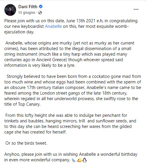 womb Posted on 26 ottobre 2021 by Marco Belardi Lascia un commento Condividi:Tweet Condividi su WhatsApp (Si apre in una nuova finestra) WhatsApp Condividi su Telegram (Si apre in una nuova finestra) Telegram Mi piace Caricamento... Precedente Continua Return to Controlli prostatici finiti in tragedia: CRADLE OF FILTH – Existence is Futile