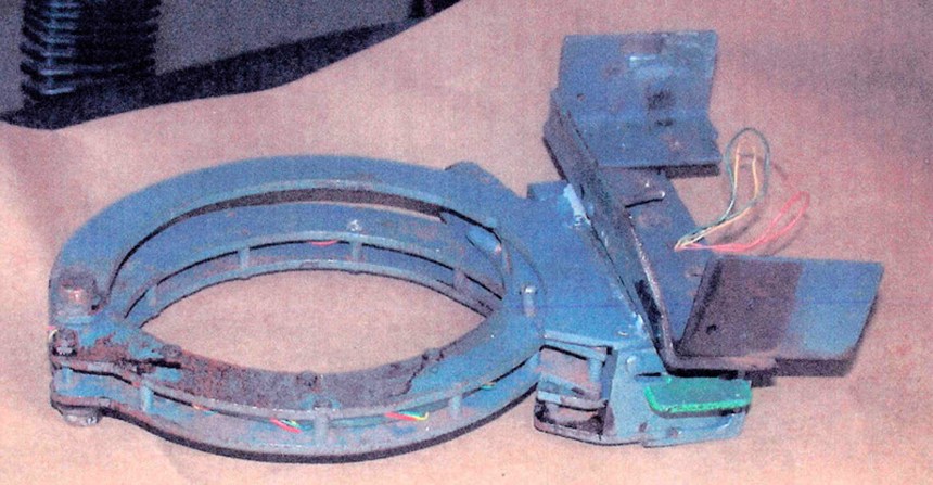 Il collare esplosivo viene analizzato a fondo. Si tratta di un ordigno artigianale, fatto quindi “in casa” con materiali riciclati: l’acciaio è stato preso da altri oggetti metallici, fuso e poi modellato in quel modo: è sostanzialmente un’enorme manetta che ha sul retro una sorta di piccolo “schienale”. I fili elettrici usati per fare i collegamenti interni sono quasi tutti diversi: è palese che il costruttore abbia utilizzato della cavetteria che aveva già a disposizione, evitando volutamente di acquistarla in un negozio appositamente per l’occasione, molto probabilmente per non destare sospetti e/o per non lasciare eventuali tracce. Anche i timer sono riciclati: sono stati presi da due dispositivi elettronici, quasi sicuramente dei forni a microonde. Salta all’occhio un biglietto attaccato sulla parte frontale dell’ordigno, rimasta quasi del tutto integra dopo la deflagrazione. Lo stile è lo stesso delle istruzioni consegnate all’impiegata della banca ed è anche identico a quello utilizzato per stilare altri “fogli illustrativi” ritrovati nell’auto di Wells, nei quali la stessa mano aveva dettagliatamente spiegato per iscritto a Brian cosa avrebbe dovuto fare una volta uscito dalla banca con i soldi. Nel suddetto biglietto l’ideatore si rivolge alle forze dell’ordine: scrive che la bomba è quasi impossibile da disinnescare e sfida chiunque a provarci, concludendo il tutto con un laconico “Act now, think later or you will die!” (“Agisci ora, pensa dopo o morirai!”).
