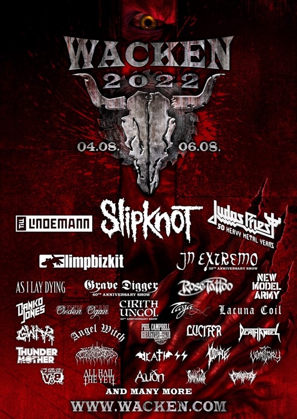 Nel 2019 sono andato per la prima volta al Wacken. Fu un’esperienza talmente totale che io e la mia signora ci ripromettemmo di tornarci ogni volta ci fosse possibile, partendo ovviamente dall’anno successivo. E invece scoppiò la pandemia. Bestemmie, testate contro il muro, atroci urla rivolte al cielo, gente che si rotola nel fango, eccetera. Così ci siamo persi due anni di Wacken, ma quest’anno, porca puttana, ci vogliamo andare a ogni costo. Molliamo il bambino dai nonni, riesumiamo i gilet con le toppe e andiamo a glorificare il metallo nel sancta sanctorum del metallo. Ora quindi farò una lista di alcuni gruppi presenti alla manifestazione, in rigoroso ordine alfabetico, con un breve commento sul perché vorrei andare a vederli.