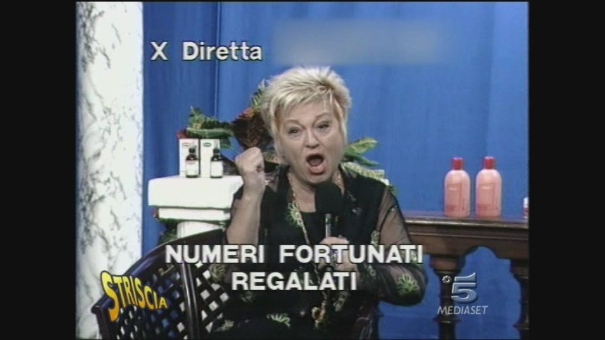 Qualche piccolo intoppo, tra dirette televisive e cospicui conti bancari, ovviamente arriva anche a ‘sto giro. Ci sono delle denunce nel corso degli anni Novanta. Gente che dice di essere stata truffata. Nonostante tutto, non succede praticamente niente sino alla fine del 2001, quando entra in scena una pensionata della provincia di Milano, Fosca Marcon. La donna, anni prima, ha comprato dei prodotti dimagranti. Non la soddisfano, quindi non li ricompra mai più, ma nel 2001 viene richiamata da una centralinista della Asciè che le rivela qualcosa di incredibile: Do Nascimento l’ha sognata ed ha elaborato per lei dei numeri fortunati per vincere cifre esorbitanti al gioco del Lotto. Non sono gratis, ovviamente: costano 300.000 lire. La signora rifiuta l’offerta, ma poi decide di chiamare Striscia la Notizia. Antonio Ricci sente odore di ascolti enormi ed organizza una sorta di trappola: la signora Marcon ricontatta la Asciè, dicendo che ha cambiato idea e vuole i numeri fortunati, che le arrivano pochi giorni dopo. Li gioca più volte, seguendo tutte le indicazioni, ma non vince nulla. Telefona nuovamente all’azienda, questa volta ripresa dalle telecamere di Mediaset, per reclamare. Insieme alla quaterna, ogni cliente, compresa quindi la signora Fosca, riceve una bustina di plastica contenente del sale da cucina e delle istruzioni, che in sostanza dicono all’acquirente dei numeri fortunati di mettere il sale in un bicchiere d’acqua nascosto in un posto buio prima di effettuare le giocate. La centralinista chiede alla Marcon di andare a prendere il bicchiere per controllare se il sale si sia sciolto. Il sale, ovviamente, è ancora lì (sono “esperimenti” da lezione di scienze di quarta elementare) e quindi l’impiegata svela l’arcano alla pensionata: quello è l’inequivocabile segno della presenza di un terribile maleficio che grava su Fosca e sulla sua famiglia, a causa del quale non ha vinto niente e che potrebbe potenzialmente arrecarle altri danni, anche molto più gravi. C’è ovviamente la soluzione: un rituale magico del Maestro, che per soli quattro milioni di lire eliminerà il maleficio e permetterà senza dubbio alcuno alla signora di vincere i tanto agognati soldi. Il pagamento per il rito si può effettuare solo in contanti, da versare ad un uomo di fiducia di Do Nascimento che andrà direttamente a casa di Fosca a consegnarle un pacco, all’interno del quale ci sarà tutto il materiale atto ad attivare il potentissimo rito di cui sopra. Il tizio arriva e la Marcon, sempre seguendo il canovaccio datole da Ricci e compagnia, gli dice di averci ripensato: non vuole più il pacco, perché la cifra è troppo alta. Il corriere a quel punto le consiglia di chiamare l’azienda, presumibilmente con la speranza che lì qualcuno riesca a convincere l’anziana donna a sganciare i soldi. La centralinista che risponde, vista la situazione delicata, passa il telefono direttamente a Stefania, che con tono aggressivo intima a Fosca di pagare, altrimenti, visto che la Marcon afferma di aver dormito poco e niente per l’agitazione, potrebbe non dormire mai più e poi riaggancia. A quel punto vengono fuori gli inviati di Striscia la Notizia, casini vari, eccetera.