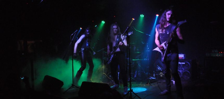Dopo gli iniziali traumi, che includono un tassista georgiano che da Ochota mi accompagna fino all’hotel fermandosi ogni trecento metri nel traffico infernale dell’ora di punta di Varsavia per aprire a volte lo sportello altre il finestrino e sganciare una sputazza, e un tragitto segnalato per i pedoni da Google Maps pieno di imprevisti e che mi costringe a prendere deviazioni importanti per arrivare al luogo del festival, giungo in ritardo rispetto alla tabella di marcia, perdendomi i Mayhayron in apertura. Erano a Cracovia pochi giorni prima per una serata con Monasterium e Roadhog (gruppo che vi consiglio caldamente) e mi sono detto che, siccome tra pochi giorni li avrei visti a Varsavia, tanto valeva non andare. Destino ha voluto anche stavolta che non sia riuscito a vederli, visto che quando arrivo al Klub Remont si stanno esibendo i Gutter Sirens, e dal nome avrete già capito da dove traggono ispirazione. Infatti, come a darmi il benvenuto, eccoli alle prese con una cover di Edge of Thorns. Ottima esecuzione con chitarrista ultramegariccardone che torna utile anche nei loro pezzi originali, pieni di buon gusto e assoli chilometrici. Molto derivativi, ma un bel sentire per aprire le danze. Intanto accanto al palco ci sono i soliti immancabili banchetti del merchandising, compreso quello della madrina della serata, ovvero la Ossuary Records, che se vi piacciono gli spadoni e le teste mozzate vi consiglio caldamente. Compro subito una maglia-ricordo della serata al banchetto degli Atlantean Kodex, vendutami da una bella ragazza coi capelli rossi (bonus). Dopo un po’, mentre sul palco si apprestano a salire gli Evangelist, che come me arrivano da Cracovia, vedo anche comparire Coralie, la chitarrista dei Kodex, che con piacere si ferma a salutare i fan e a fare foto. Carinissima anche lei e simpatica.