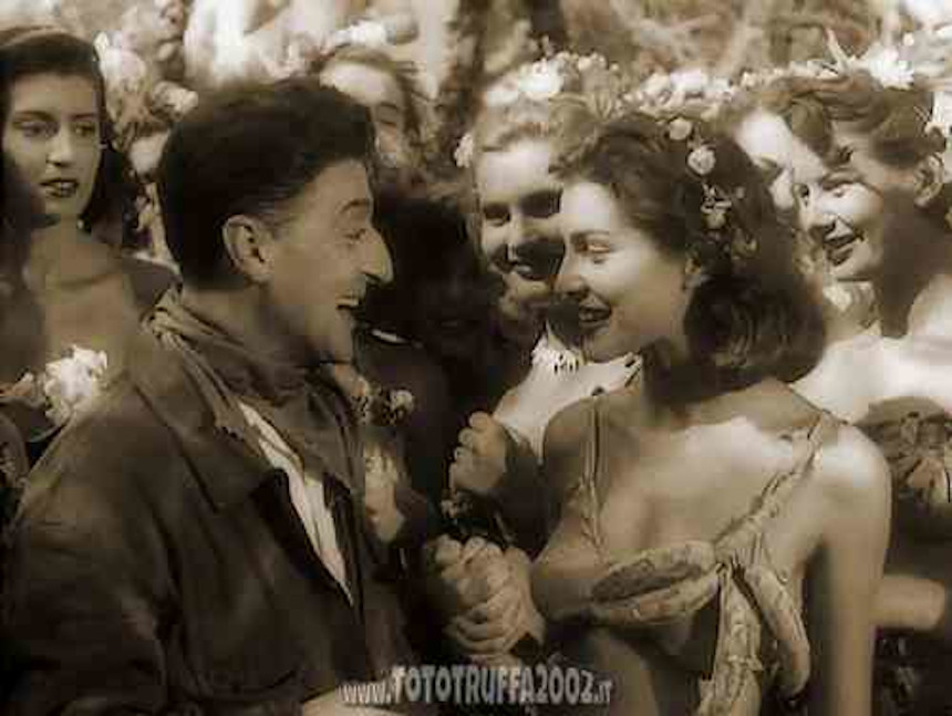 Anna Fallarino e Totò in TotòTarzanAnna Fallarino, classe 1929, nasce in provincia di Benevento in una famiglia della piccola borghesia: è figlia di un impiegato e di una casalinga. Quando ha tre anni, sua madre abbandona il tetto coniugale per fuggire con il suo amante. Rimasto da solo, il signor Fallarino non si ritiene in grado di accudire la figlioletta, quindi la affida a sua sorella. La zia considera la piccola un peso e la tratta di conseguenza, distruggendole l’infanzia. Compiuti 16 anni, Anna si trasferisce a Roma a casa di uno zio militare. Nel quartiere è corteggiatissima e ben presto si fidanza con Remo, il garzone di un macellaio della zona. Alla bella Fallarino quella vita però sta stretta e quindi cerca di sfruttare la sua avvenenza per fare carriera nel mondo dello spettacolo. Remo disapprova le velleità della sua ragazza e la storia finisce. Nel 1950 Anna ottiene una piccola parte, poco più di una comparsata, in un film di Mario Mattoli, Tototarzan, che vede come protagonista addirittura Totò. Non è una svolta, ma un trampolino di lancio che le permette di frequentare le feste del jet set romano, dove conosce il già citato Giuseppe Drommi, rampollo di una importante famiglia dell’alta borghesia capitolina, con il quale poco dopo convola a nozze. Il matrimonio procede in maniera più o meno ordinaria, tra alti (non troppi) e bassi (diversi), sino alla summenzionata serata di Cannes del 1958. Anna nota l’intervento energico del marchese Casati Stampa e ne rimane colpita.