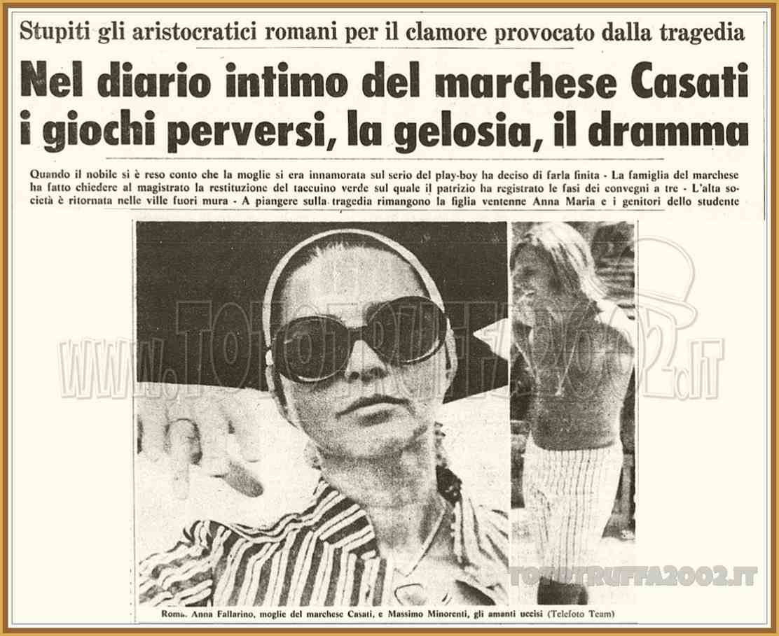 Sulle copertine finisce, suo malgrado, anche Anna Maria Casati Stampa, la figlia di primo letto di Camillo. La povera adolescente è in un certo senso doppiamente protagonista del fattaccio: in primis perché è la diretta discendente di uno degli attori principali di quella storia morbosa e in secondo luogo perché ne è l’unica erede. Ma ci sono due problemi: la ragazza ha 19 anni, quindi è minorenne (la maggiore età passerà dai 21 ai 18 anni nel 1975) e di conseguenza necessita di un tutore legale per incassare. Il secondo intoppo è il testamento di Camillo: il marchese ha lasciato ad Anna Maria solo un quadro e 100 milioni di lire, destinando il resto della sua enorme fortuna alla moglie. Qualcuno mette in dubbio la dinamica dei fatti: se Anna Fallarino fosse morta dopo Camillo, anche soltanto qualche minuto, avrebbe ereditato, seppur per pochi istanti, tutte le proprietà dei Casati Stampa. Se la realtà dei fatti dovesse essere quest’ultima, all’atto pratico gli eredi legittimi sarebbero i parenti della Fallarino (lei non aveva avuto prole in entrambi i matrimoni) e non la figlia del marchese e della sua prima moglie. Una enorme matassa da sbrogliare. Qui arriva il bello.
