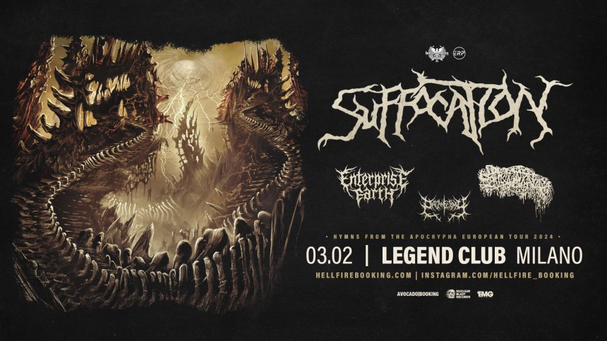 Sabato 3 febbraio al Legend c’è una seratona da non perdere: i Suffocation sono pronti a darvi mazzate sui denti in compagnia di Enterprise Earth, Sanguisugabogg e Organectomy. Se invece quella sera vi sentite più sensibili e non avete troppa voglia di essere presi a calci in bocca, il vostro posto è lo Slaughter, dove si esibiranno i Clan of Xymox. Altrimenti al CSO Pedro di Padova c’è il 100% of 100% Hardcore Fest, con Magnitude, Seed of Pain e tanti altri. Un’altra opzione (ad ingresso gratuito) è il Saturdeath Night, in scena al KM 298 di Lodi, con Infection Code e Lacerhate.