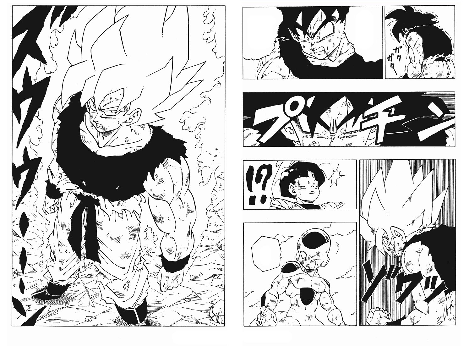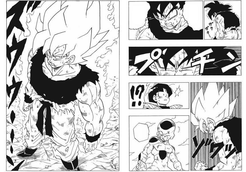 Ci resta però Dragon Ball, e ci resterà per sempre. Soprattutto Dragon Ball Z, che portò la storia a un livello di cui nessuno si sarebbe aspettato agli inizi della prima serie. Quando Goku diventa adulto, e si trova ad affrontare una serie di nemici sempre più potenti e demoniaci, il tratto di Toriyama cambia e l’attenzione alle scene di combattimenti diventa maniacale, regalandoci alcune delle coreografie di combattimento più belle che si possano immaginare. I personaggi di Dragon Ball Z sono talmente riusciti e iconici che, come si diceva, tuttora vengono riciclati in nuove stagioni in cui non c’è nulla di strutturalmente nuovo e il cui unico scopo è riproporre stolidamente quei meccanismi che funzionavano così bene. La saga dei Saiyan, che poi diventa saga di Freezer, e la saga dei cyborg, che poi diventa saga di Cell, sono talmente ben orchestrate che non ci si stuferebbe mai di leggerle. La saga di Majin Bu, nonostante inizi a mostrare un po’ di stanchezza e qualche buco narrativo, rimane comunque splendida.