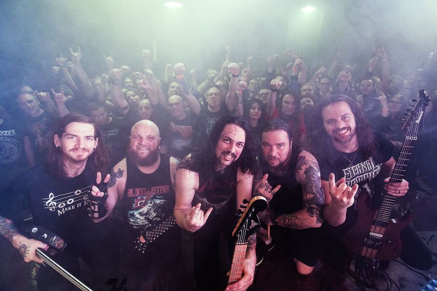 Iniziamo però con i COLTRE, provenienti da Londra, Regno Unito, ma di cui riconosco immediatamente il marcatissimo accento italico nelle interazioni col pubblico. Giovane band che basa il suo repertorio su di una NWOBHM d’annata, si esibisce in una sala non ancora del tutto piena ma già entusiasta. I suoni non sono proprio i migliori ed esibirsi alle cinque del pomeriggio non è mai il top assoluto, però i Nostri se ne fregano e danno tutto, lasciando un buon sapore in bocca e preparandoci all’avvento degli IRONBOUND, direttamente dal roster della Ossuary. I polacchi sono pesantemente ispirati dagli Iron Maiden dei tempi migliori, con un cantante spaventosamente simile a Blaze Bayley ma con un’estensione maggiore. Sono qua anche per promuovere il nuovo album Serpent’s Kiss. La formula maideniana rimane invariata, però è giusto dire che non si tratta di un mero “gruppo clone” e che qualche idea o spunto che va su un power/speed più personale ogni tanto si sente. Il cantante è bravo, ma forse ha bisogno di fare più esperienza sul palco. Ogni tanto c’è qualche sbavatura qua e là ma nulla che sminuisca il risultato finale, ovvero una esibizione davvero godibile con i giusti ingredienti: chitarre taglienti e ben armonizzate, cavalcate in stile Harris e tutta quella roba là.