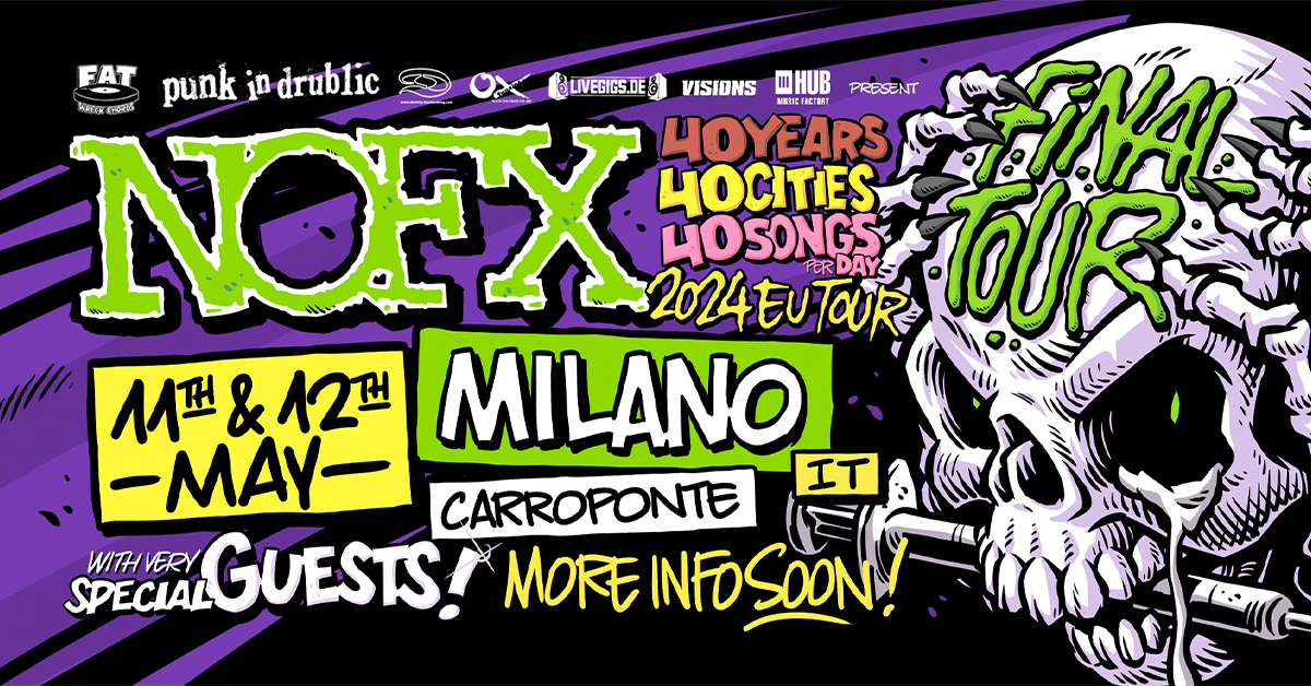 Ma il weekend dell’11-12 maggio c’è anche l’attesissima calata dei NOFX, che dopo quarant’anni di carriera saluteranno il loro pubblico prima di ritirarsi dalle scene. I due concerti al Carroponte saranno interamente dedicati ai vecchi album, con scalette diverse per ogni sera.