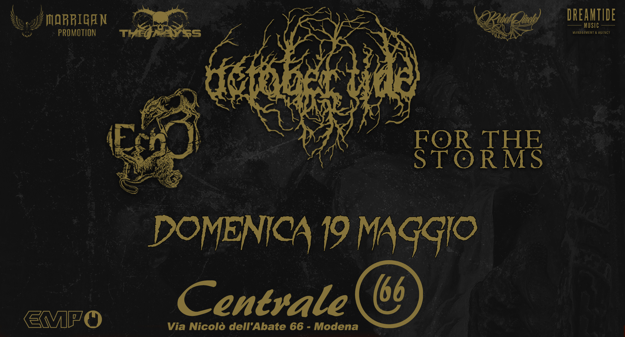 Domenica 19 gli October Tide ammanteranno il Centrale66 di una cappa plumbea, ma se non avete voglia di pensare alla vostra ineluttabile fine potete optare per il metalcore dei Resolve al Legend Club.