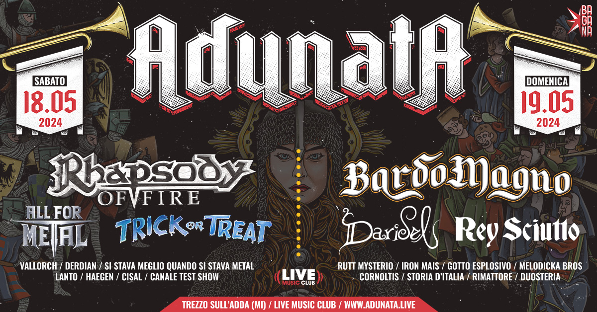 Il weekend del 18-19 è anche quello della VI Adunata di Feudalesimo e Libertà al Live Music di Trezzo sull’Adda: protagonisti assoluti i Rhapsody of Fire il primo giorno, ma c’è anche spazio per Trick or Treat, BardoMagno e una quantità di ospiti tra cui Rutt Mysterio, indimenticato campione italiano di rutti.