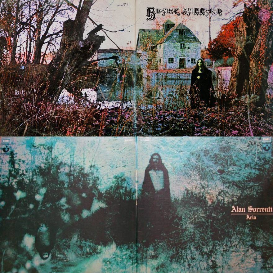 Parlando della piccola scena “cosmica” nostrana, non è possibile non tirare in ballo poi la psichedelia mediterranea di Aria del gallese-partenopeo Alan Sorrenti, ancor più orientato sugli esempi di Tim Buckley e Peter Hammil. L’album, leggiadro e stupendo, non è certo per tutti. Io la voce di Sorrenti non la digerisco particolarmente. Eppure riconosco come Aria abbia una grandiosità serena e rarefatta, unica. Uscito nel ’72, Battiato non c’entra nulla, per essere chiari. Il siciliano si divertì a dileggiare il napoletano, più in là, negli ’80, nel testo di Bandiera Bianca, per la svolta commerciale che Sorrenti avrebbe preso di lì a poco, dopo il seguito di Aria. Il successo comunque non fu particolarmente fortunato per Sorrenti, arrivarono la droga e un’esperienza in carcere a portarlo giù a terra, fino a che non si convertì al buddismo, rimettendosi in carreggiata, fino ad oggi. Battiato poi in realtà un gesto distensivo lo fece, coverizzando Le Tue Radici in Fleurs 3, nel 2002. Un po’ labile, il legame col tema di oggi, ne convengo. Ma come si fa a fare una serie intera sulle tracce sabbathiane nella musica anni ’70 italiana senza segnalare appunto la copertina più sabbathiana di tutte quelle mai pubblicate nel Bel Paese? Giudicate voi stessi.