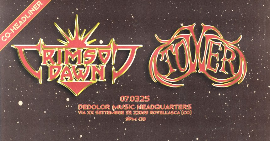 - Al Dedolor, nel Comense, il palco verrà diviso equamente tra Crimson Dawn e Tower, co-headliner per una serata sinceramente imperdibile per chi bazzica quelle zone;