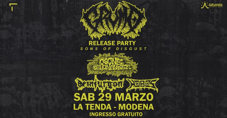 - Gli appassionati di metal estremo in Emilia non possono fare a meno di presenziare al La Tenda di Modena, dove ci sono i Grumo che presentano il loro nuovo Sons of Disgust. Di spalla nomi di tutto rispetto: Ozone Dehumanizer, Demiurgon e Hobos. Ingresso gratuito;