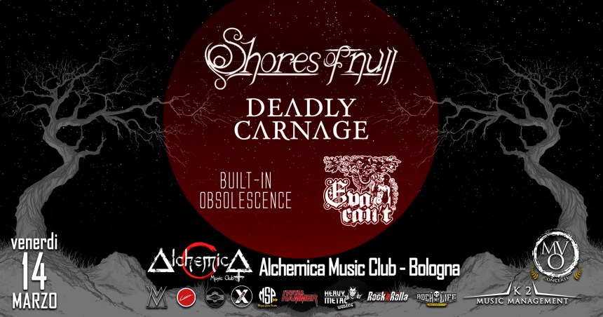 - Infine, all’Alchemica, ritornano gli Shores of Null in un concerto da headliner insieme ad alcune glorie emiliano-romagnole: Deadly Carnage, Built in Obsolescence ed Eva Can’t.