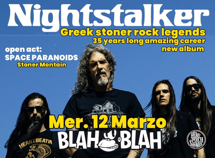 Mercoledì 12 marzo al Legend passano i Leaves’ Eyes, insieme a Nytt Land, Ater e un altro gruppo da annunciare. I torinesi se la passano meglio, se posso permettermi: al Blah Blah ci sono i veterani dello stoner greco Nightstalker, in cui suona anche Andreas Lagios, ex Rotting Christ. Ad accompagnarli i piemontesi Paranoids, che si definiscono “mountain stoner”.