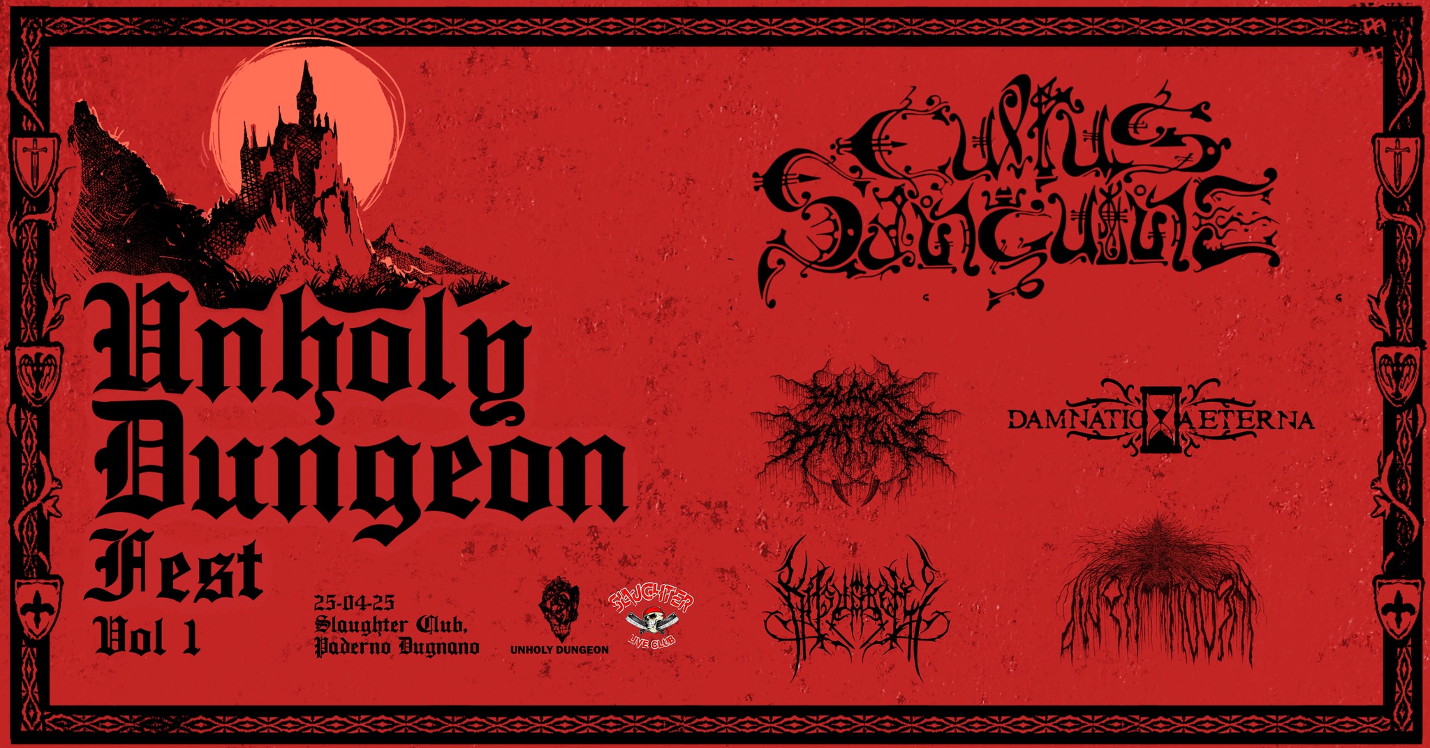 - Lo Slaughter risponde con l’Unholy Dungeon, festival di musica mefitica con Cultus Sanguine, Black Raptus, Damnatio Aeterna e altri;
