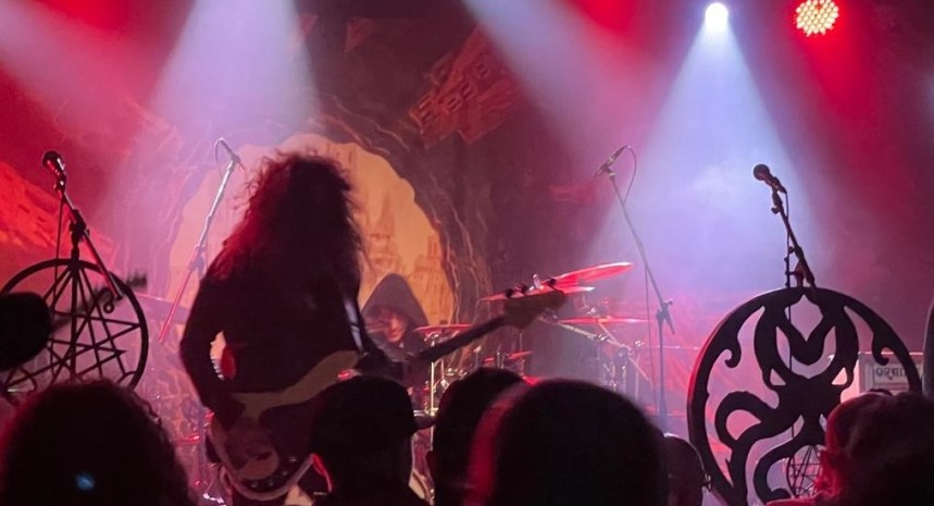 Tre gruppi relativamente giovani, divisi dai generi esplorati ma accomunati dal tentativo di ridefinirne le regole. Lietissimo per la presenza dei CARONTE, che non aprono solo le date italiane ma fanno parte del cartellone per tutta la tournée in giro per l’Europa. Se il doom dei parmensi risulta tutt’altro che fuori contesto non è solo per i riferimenti occulti di cui è imbevuto ma anche per un suono che, distantissimo dal canone narcosatanista da tempo prevalente, abbraccia suggestioni che arrivano fino ai Bathory, un riferimento evidente soprattutto nei brani più datati come Black Gold, estratta dal debutto del 2012 Ascension. Due membri, il cantante Dorian Bones e il chitarrista Asher, arrivano, del resto, dai nostri amati Whiskey Ritual. Doom epico, quindi, ma non epic doom tout-court. “Doom per chi non si droga”, scherza Charles. Dal vivo le chitarre hanno però un suono più classico e corposo, che libera echi Nwobhm.