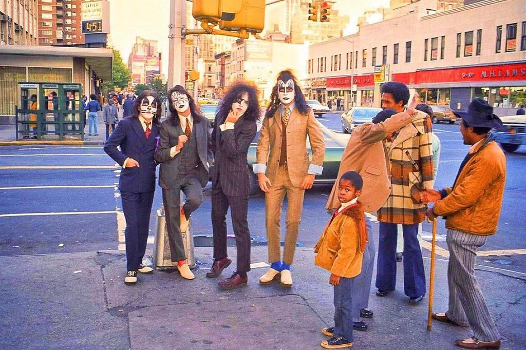 La copertina viene dalla storica sessione fotografica realizzata all’angolo tra la 23esima e l’ottava avenue a New York City, con la famigliola sbalordita che guarda ‘sti quattro alieni venuti da chissà dove con ai piedi zeppe da mezzo metro, truccati da cose strane e vestiti in giacca e cravatta. Ricorda Ace Frehley: