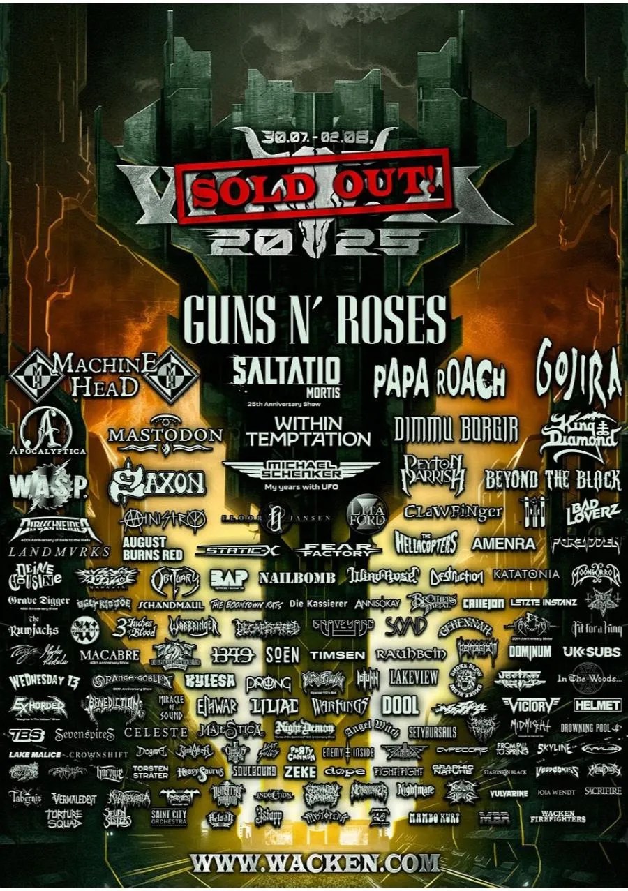 GUNS N’ROSES, gruppo per il quale non ho alcuna affezione sentimentale dato che, a differenza di moltissimi della mia generazione, non sono cresciuto ascoltando i loro dischi. Non mi è neanche mai venuta voglia di recuperarli dopo, perché non sono mai stato un appassionato di quel genere lì. Però non li ho mai visti e magari potrei essere fulminato sulla via del Wacken, chi lo sa.