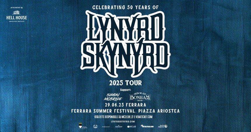 - Al Ferrara Summer Festival si festeggia il cinquantennale dei Lynyrd Skynyrd. Di supporto Simon McBride e Deborah Bonham (sorella di Bonzo);